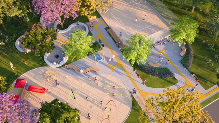 Ruas asfaltadas, Rede de água, Rede de esgoto, Drenagem Pluvial, Playground, Quadra esportiva, Espaço de convívio, Sinalização das Ruas, Rede Elétrica, Paisagismo, Calçadas pavimentas, Acessibilidade.